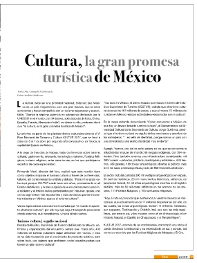 que “la cultura, es la gran promesa turística de México”. los extranjeros; “…es sello de identidad, porque somos un país con